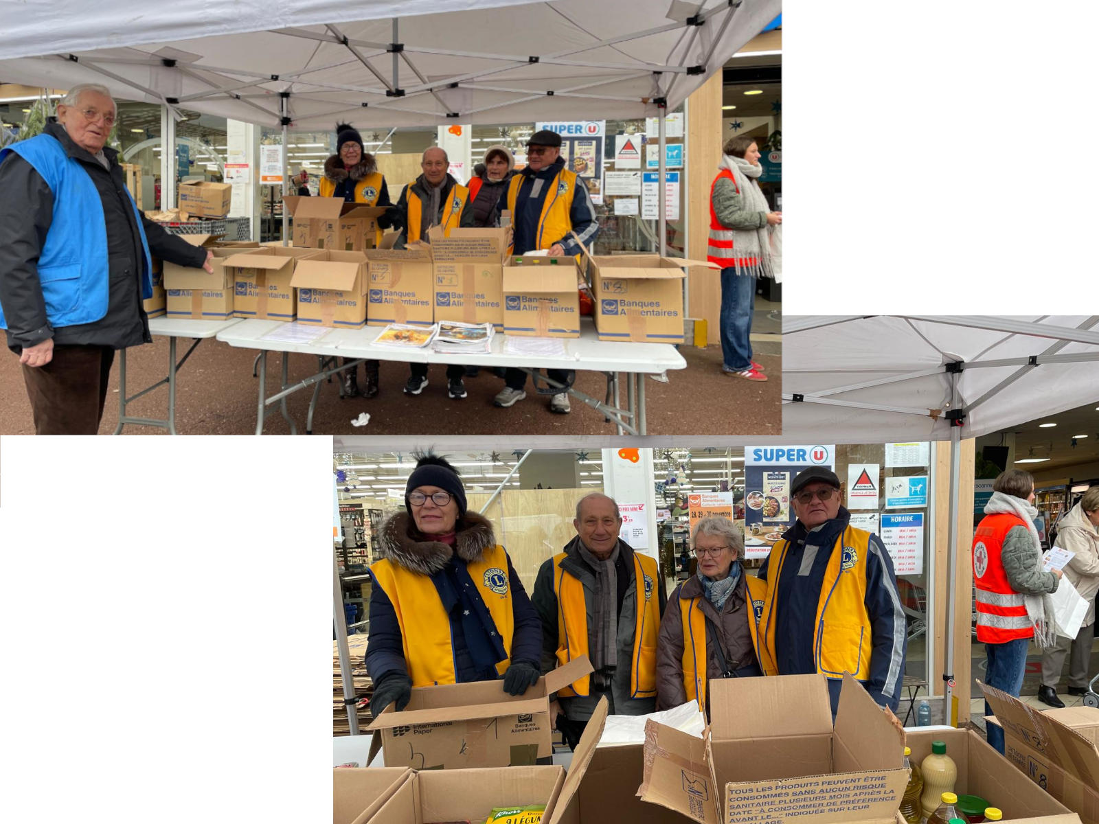 Collecte Banque AlimentaireCette année, c'est la pluie qui accompagne notre participation, avec nos amis du Lions Club de Noisy Bailly, à la banque alimentaire pour la Croix-Rouge au Super U de Noisy le roi.