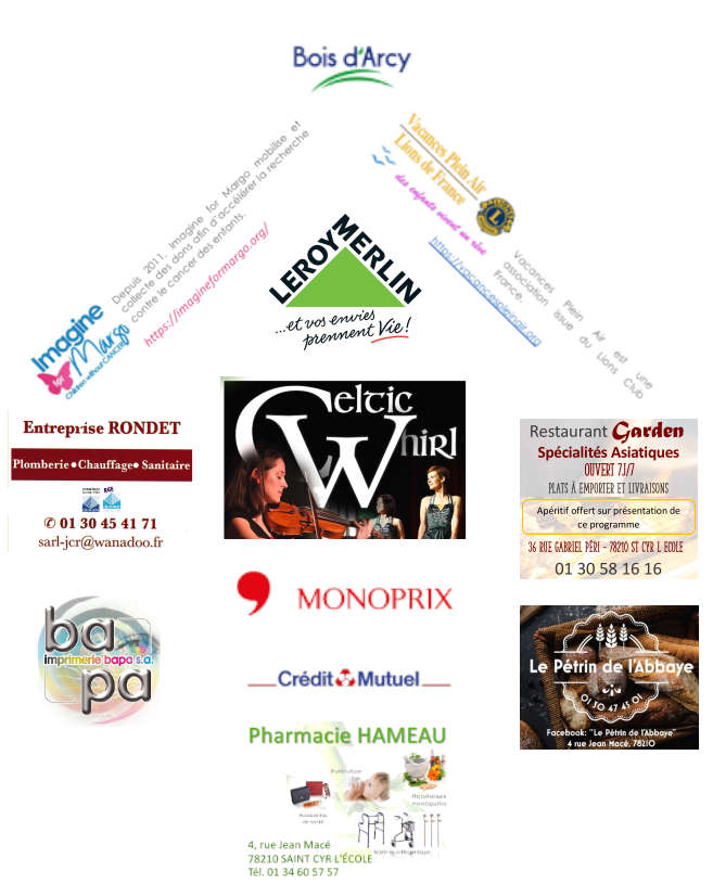 Concert au profit de l'enfanceSoutenons, avec le spectacle de ''Celtic Whirl'', les actions du Lions Club pour lutter contre le cancer pédiatrique[↗] et l'enfance sans vacance.[↗]